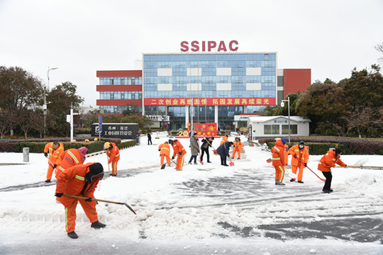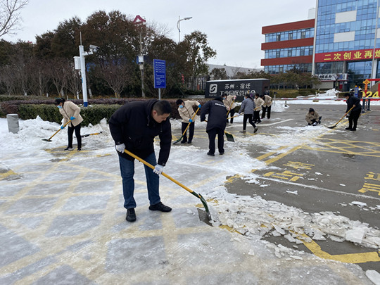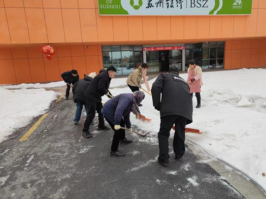 一場(chǎng)大雪,把蘇宿園區(qū)裝點(diǎn)得銀裝素裹,卻給群眾出行帶來了很大不便。為保證居民安全出行,建發(fā)公司全體職工參與園區(qū)及各物業(yè)項(xiàng)目道路掃雪除冰工作,奏響全員鏟冰除雪“進(jìn)行曲”。