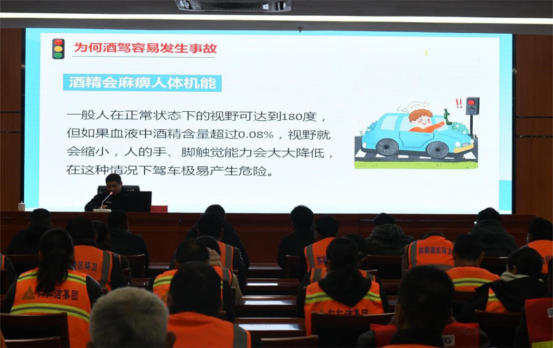 培訓(xùn)現(xiàn)場,仇隊(duì)長通過播放常見的交通違法行為紀(jì)錄片,向城維作業(yè)車輛駕駛員講解了酒駕、路怒、分心駕駛行為的危害。同時(shí),仇隊(duì)長就日常安全作業(yè)過程中如何靠邊停車、如何避讓行人、如何避免盲區(qū)、如何在冬季行車等做了詳細(xì)的講解,讓培訓(xùn)人員受益匪淺。