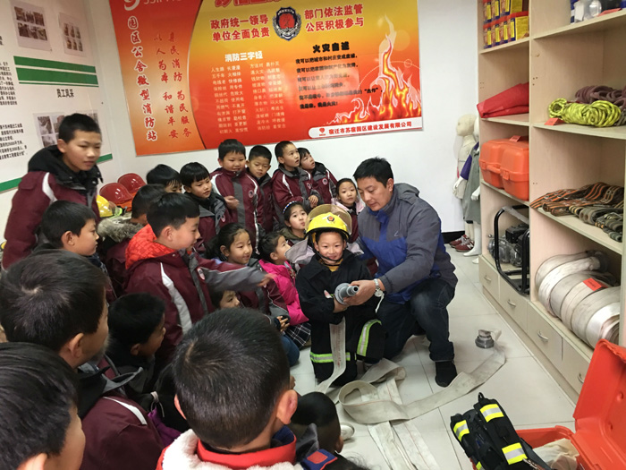 1月25日上午,蘇宿外國(guó)語學(xué)校師生再次走進(jìn)園區(qū)公舍微型消防站,感知消防,提高火災(zāi)安全意識(shí),學(xué)習(xí)消防知識(shí)。活動(dòng)中,工作人員向師生們介紹了消防器材的名稱及如何使用,邀請(qǐng)小朋友體驗(yàn)穿戴消防服,講解、示范油盆滅火,模擬火災(zāi)現(xiàn)場(chǎng),體驗(yàn)火場(chǎng)逃生自救,使師生們了解災(zāi)難來臨時(shí)如何應(yīng)對(duì),通過學(xué)習(xí),確保同學(xué)們度過一個(gè)愉快的平安假期。